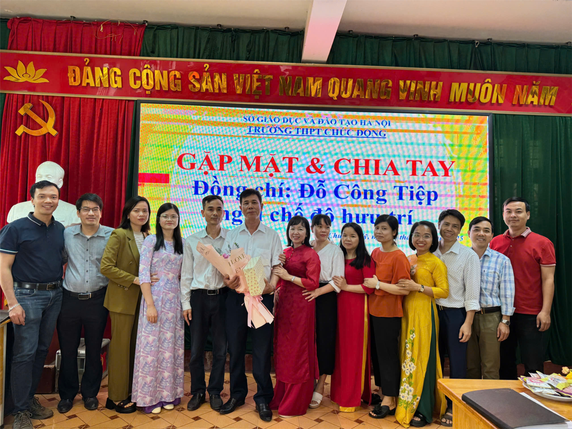Buổi lễ chia tay khép lại trong những cái bắt tay lưu luyến, những cái ôm chân tình và những lời chúc tốt đẹp dành cho thầy Tiệp trong chặng đường mới của cuộc sống. Dù không còn đứng trên bục giảng, hình ảnh thầy – một người thầy mẫu mực, tận tâm – vẫn sẽ luôn là niềm tự hào và là ký ức đẹp trong lòng bao thế hệ thầy cô và học trò THPT Chúc Động.