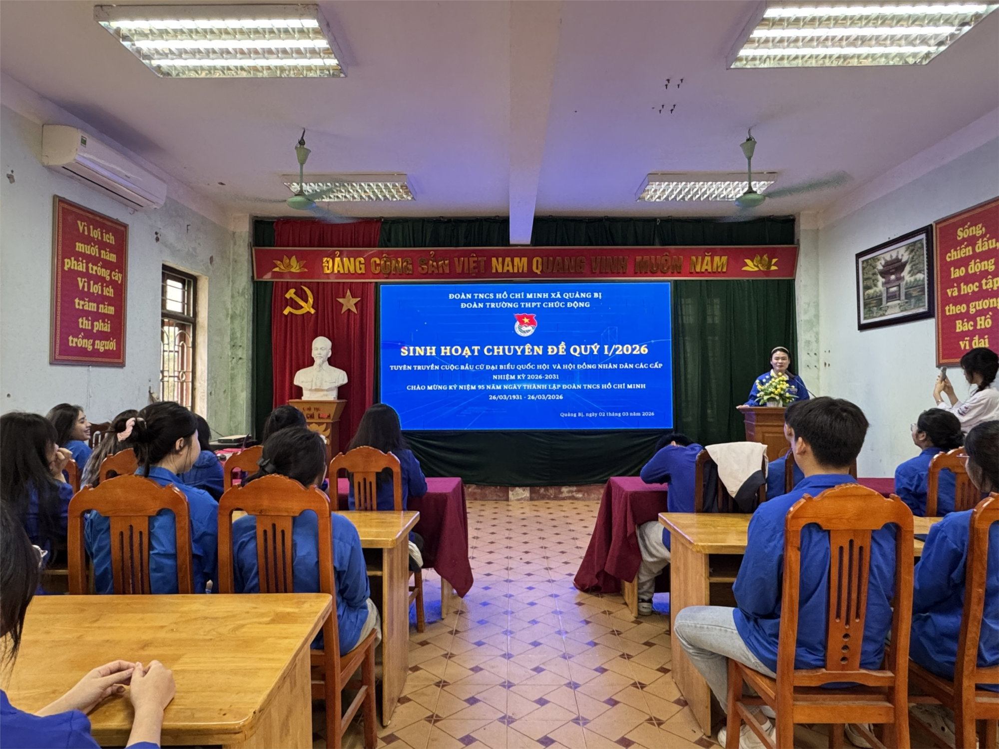 Trong không khí trang nghiêm và đầy nhiệt huyết của tuổi trẻ, buổi sinh hoạt chuyên đề Quý I/2026 của Đoàn Trường THPT Chúc Động đã diễn ra với tinh thần trách nhiệm, bản lĩnh và khát vọng cống hiến. Đây không chỉ là một hoạt động thường kỳ, mà còn là diễn đàn để mỗi đoàn viên, thanh niên nhìn lại vai trò của mình trước những sự kiện chính trị trọng đại của đất nước.