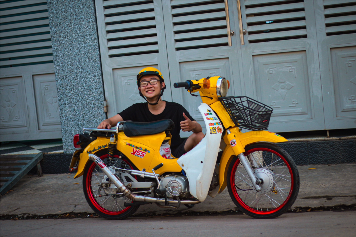 Đó là em Nguyễn Văn Dũng, (SN 2003) ở Biên Hòa, Đồng Nai, người đã ‘chế’ thành công chiếc xe Cub 50 Daelim cũ của Hàn Quốc thành một chiếc xe Cup Thái khi đang học lớp 11.
