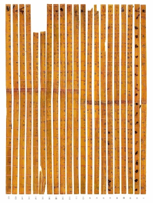 Theo kết quả giám định bằng đồng vị carbon, các nan tre này thuộc về năm 300 trước công nguyên, thời Chiến quốc (481-221 TCN) gồm nhiều nước chư hầu trước khi nhà Tần thống nhất Trung Hoa năm 221 TCN.