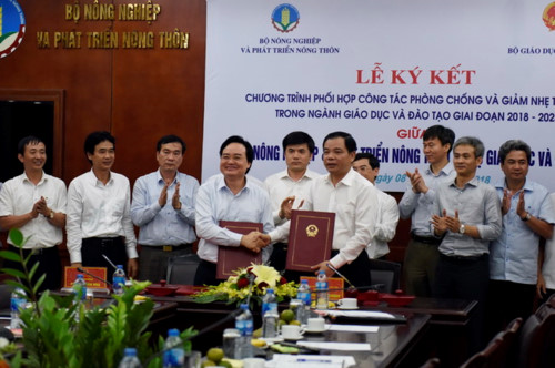 Bộ trưởng Phùng Xuân Nhạ cho biết Bộ GD&ĐT nhất trí rất cao với Bộ NN&PTNT trong chương trình phối hợp, ưu tiên cho những hoạt động trước mắt, đồng thời cũng chú trọng đến tính chất lâu dài, đưa các chương trình này vào các môn học phù hợp với chương trình phổ thông và SGK mới.