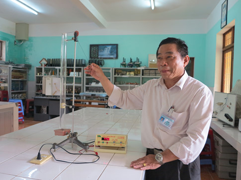 Thầy Cư trong phòng thí nghiệm vật lý của Trường THPT Hoàng Hoa ThámẢNH: DIỆU HIỀN