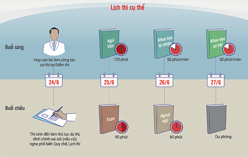 Thí sinh bắt đầu làm thủ tục dự thi THPT quốc gia từ chiều 24/6. Đồ họa: Tạ Lư