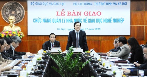 Báo cáo tại Lễ bàn giao, Thứ trưởng Bùi Văn Ga – cho biết: Hai Bộ dự kiến sẽ ký biên bản bàn giao trước ngày 31/12/2016. Kể từ ngày 1/1/2017, Bộ Lao động - Thương binh và Xã hội thực hiện quản lý nhà nước toàn bộ lĩnh vực giáo dục nghề nghiệp (trừ các trường sư phạm, các ngành đào tạo giáo viên).