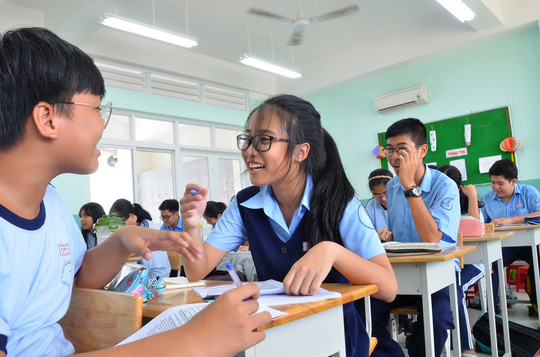 Học sinh Trường THCS Nguyễn Văn Tố (quận 10, TP HCM) Ảnh: TẤN THẠNH