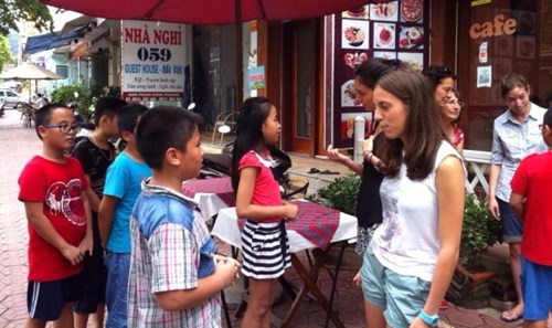Cô Dung dẫn giải: Để tăng cường tiếng Anh với người nước ngoài, học sinh của trường Tiểu học Lê Ngọc Hân còn đóng vai là người bán hàng, tập làm hướng dẫn viên tại khu vực ga Lào Cai để được đối thoại với khách. Học sinh trường Tiểu học Hoàng Văn Thụ đi Sa Pa tổ chức đêm giao lưu văn nghệ với khách du lịch là người ngoại quốc.