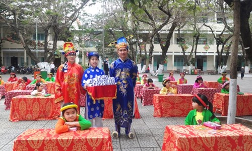 Tùy theo năng khiếu, các em có thể tham gia hát múa, biểu diễn thời trang, vũ dân gian… Hội thi viết chữ đẹp được tái hiện theo hình thức thi trạng nguyên thời xưa, HS và giáo viên đều xúng xính với áo dài, khăn đóng.