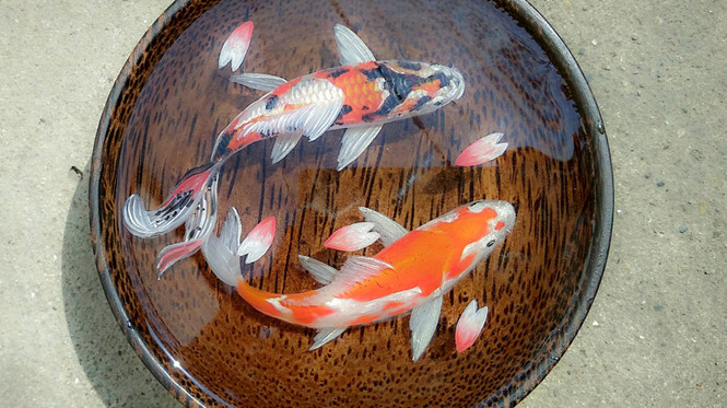 Do nhựa thông trong suốt giống như nước nên các họa sĩ thường vẽ động vật dưới nước như cá, rùa… “Nói chung tùy vào sự sáng tạo mà người ta vẽ, nhưng phải phù hợp với chất liệu nhựa trong và màu sắc của chậu đựng. Ở Việt Nam, người vẽ thường sử dụng nhựa resin kết hợp cùng màu sắc của sơn dầu hoặc acrylic. Nhìn qua tưởng chỉ cần cầm cọ lên vẽ một lần là xong, nhưng không đơn giản vậy", bạn Huỳnh Anh (Q.Tân Bình, TP.HCM) tâm sự.