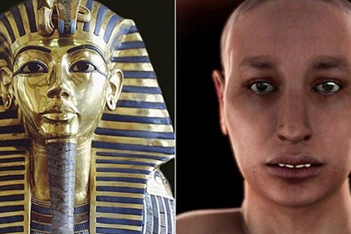 Do là kết tinh của một cuộc hôn nhân cận huyết nên pharaoh Tutankhamun bị dị dạng với một hàm răng hô, khuôn mặt lệch, một bàn chân bị vẹo, hông dị tật và mắc bệnh động kinh. Ảnh: BBC.